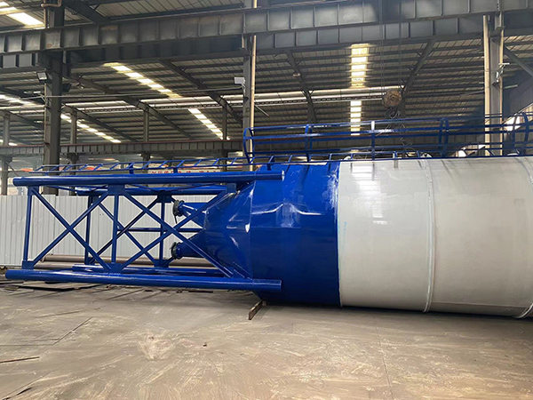 水泥倉(cāng)(水泥罐)的組成有:倉(cāng)體鋼結(jié)構(gòu)部分、爬梯、護(hù)欄、上料管、除塵器、壓力安全閥、高低料位計(jì)、卸料閥等。  除塵系統(tǒng)、破拱裝置、料位裝置的說(shuō)明:  1、除塵系統(tǒng):水泥倉(cāng)頂部